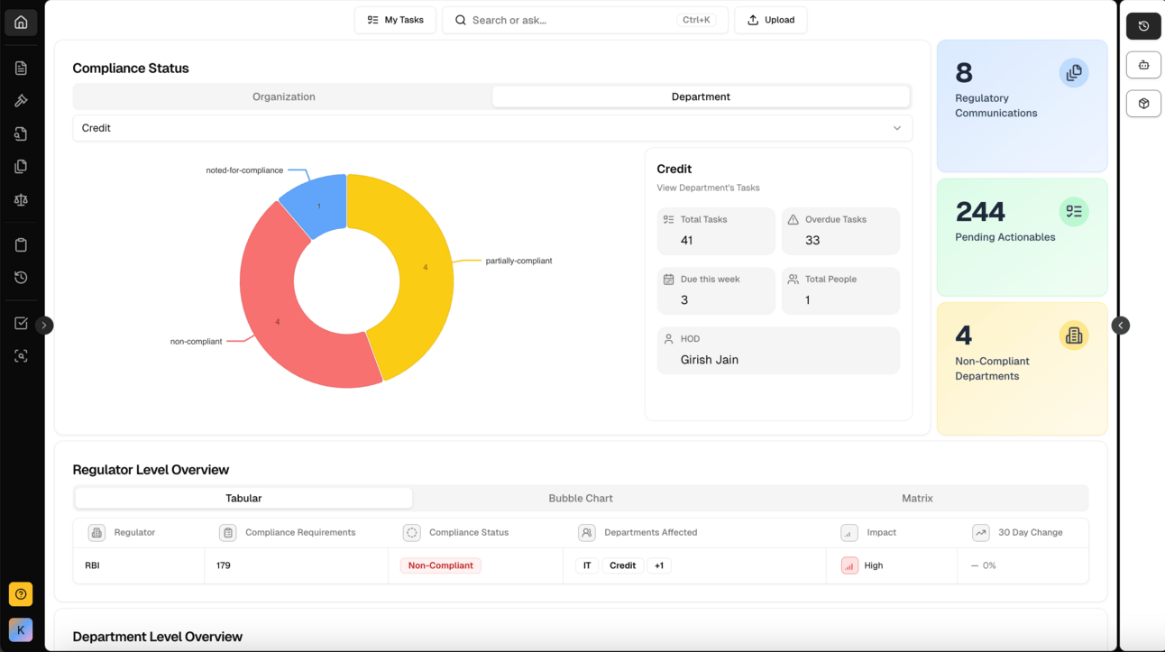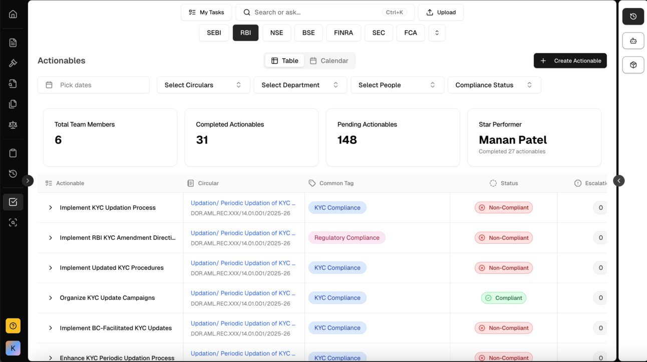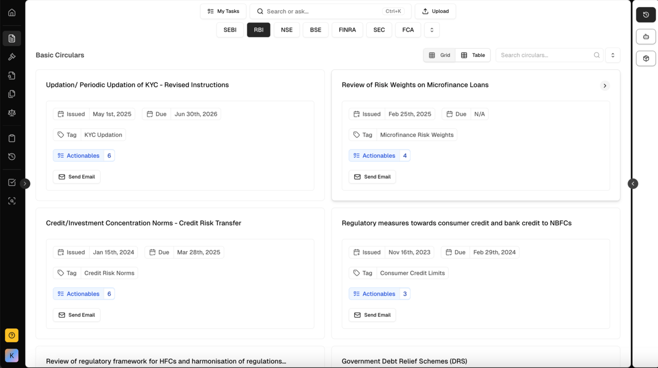 Circular spotted late | Real‑time scraper + NeoGPT parses RBI/SEBI/IRDAI circulars and auto‑tags clauses | 15 min discovery vs 3 days |